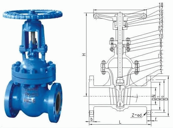 F7德標閘閥外形結(jié)構(gòu)圖: